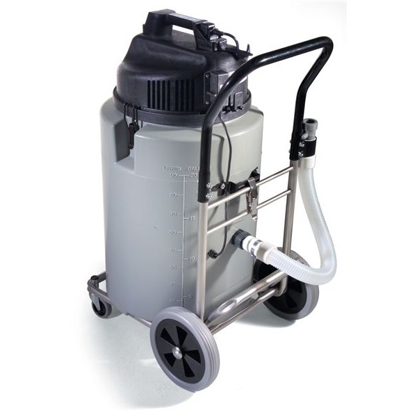 Odkurzacz przemysłowy do sprzątania na sucho i na mokro Numatic WVD 2000-2 na wózku transportowym, z wężem spustowym (10m), zwiększoną mocą i trwałym akcesoriami.