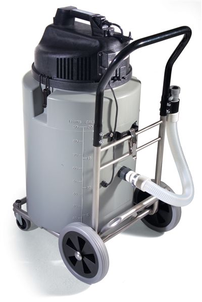 Numatic WVD 2000 AP-2 – odkurzacz przemysÅ‚owy, sprzÄ…tanie na sucho i na mokro, z wózkiem transportowym, automatycznÄ… pompÄ… do usuwania wody i dwoma turbinami ssÄ…cymi.